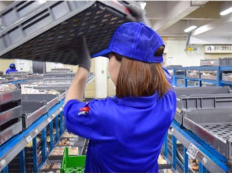 あなたもよく見かける有名メーカーの商品(パン)を各店舗毎にコンテナに仕分けするお仕事です。